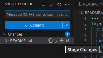 En el símbolo `+` podemos agregar los cambios, a esto se le llama *staging.* El staging es guardar provisoriamente los archivos, preparándolos para hacer commit.