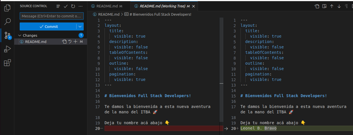 Y ahora, vamos a hacer el commit.