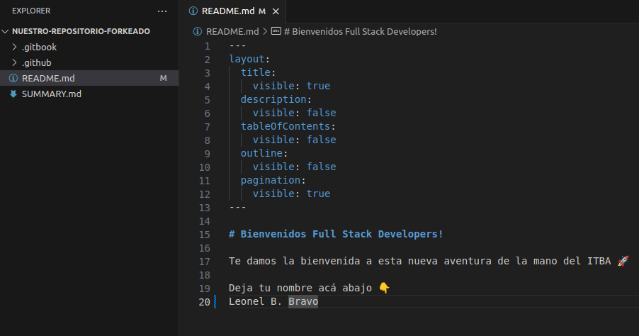 Nos posicionamos en el archivo README.md